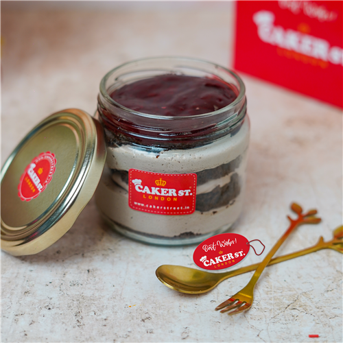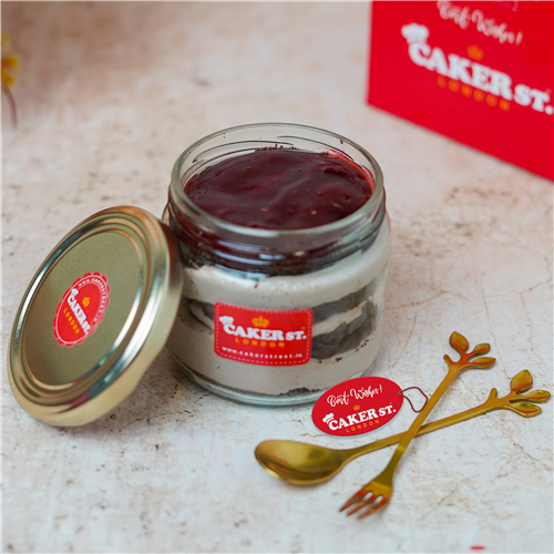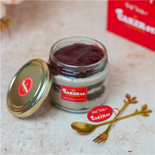 Indulge in our Strawberry Chocolate Cake Jar, featuring layers of moist chocolate sponge, luscious whipped cream, and a touch of sugar syrup. Filled with juicy strawberry fruit filling, this dessert offers a perfect blend of rich chocolate and fresh strawberry sweetness in every spoonful.