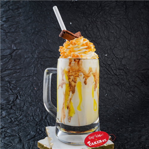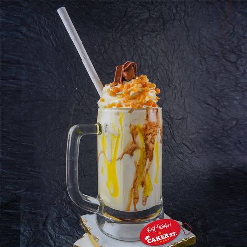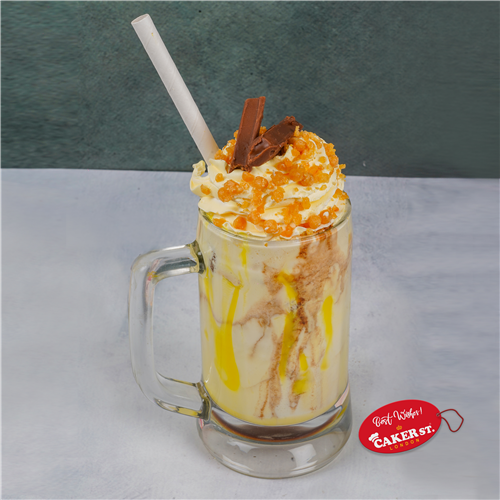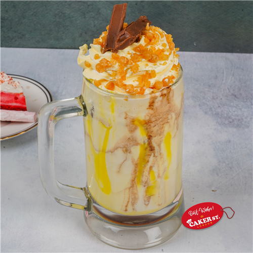 Dive into the rich flavors of our Butterscotch Bliss Cake Shake. A delightful blend of creamy milk and vanilla ice cream mixed with a generous slice of decadent butterscotch cake. Topped with fluffy whipped cream and a drizzle of luscious butterscotch crush, this shake is a sweet, indulgent treat that’s sure to satisfy your dessert cravings.
