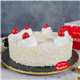 Enjoy our Vanilla Sponge Cake with whipped cream, sugar syrup, white chocolate, and a filling of red cherry and strawberry crush. A fruity and creamy delight!