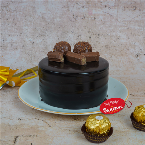 Experience the ultimate chocolate treat with a moist chocolate sponge soaked in sugar syrup, layered with creamy chocolate ganache, and topped with KitKat bars and Ferrero Rocher chocolates. Finished with a decadent chocolate garnish, this cake is a chocolate lover's paradise!