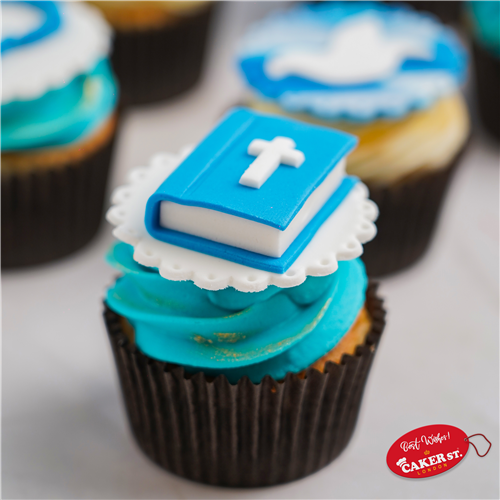 These Christening cupcakes are a charming treat for celebrating new beginnings! Featuring a soft base made from refined wheat and sugar, infused with creamy vanilla and white chocolate, each cupcake is topped with rich cheese cream frosting. Elegantly decorated with sweet sugar paste accents, these cupcakes add a touch of grace and sweetness to the special occasion, making them perfect for sharing with family and friends!