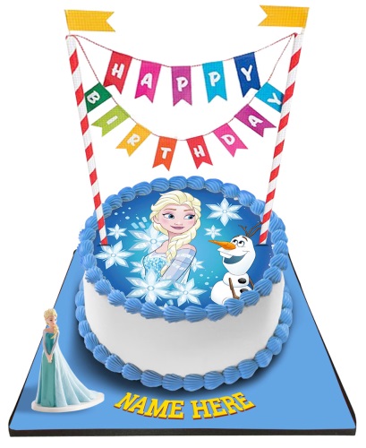 Disney Frozen Princess Cake With Happy Birthday Bunting &Topper
