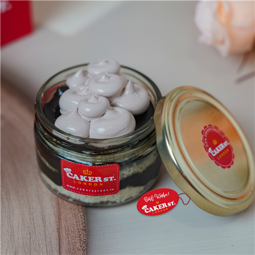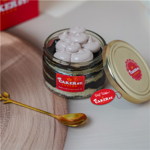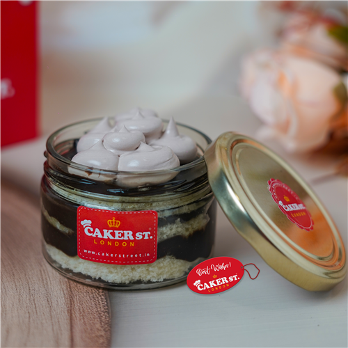 Enjoy our Chocolate Ganache Cake Jar—a delicious layered treat with moist chocolate sponge, rich chocolate ganache, and a touch of sugar syrup for extra sweetness. Topped with a light and fluffy whipped cream, this jar delivers a perfect balance of chocolatey indulgence and creamy delight.