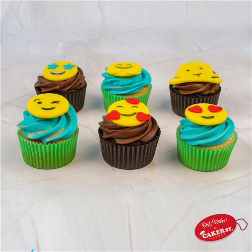 These Emoji cupcakes are a fun and vibrant treat that brings joy to any celebration! Featuring a soft base made from refined wheat and sugar, infused with creamy vanilla and white chocolate, each cupcake is topped with rich cheese cream and fresh blueberries. Decorated with playful sugar paste emojis and a sprinkle of cocoa powder, along with indulgent Belgian chocolate accents, these cupcakes are sure to make everyone smile with each delicious bite!