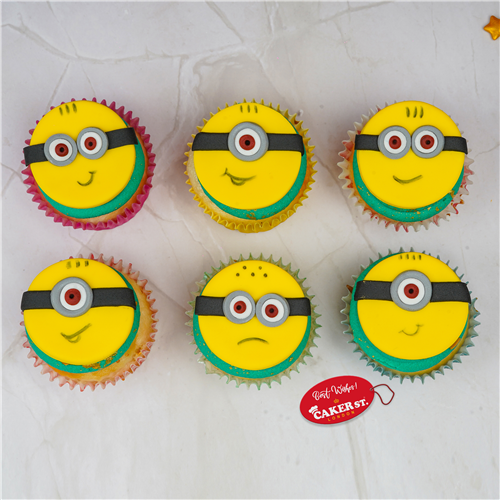 These Minion cupcakes are a fun and delightful treat perfect for fans of the lovable characters! Featuring a soft base made from refined wheat and sugar, each cupcake is infused with creamy vanilla and white chocolate. Topped with rich cheese cream and decorated with playful sugar paste details, they bring a cheerful and whimsical touch to any celebration. Each bite is sure to bring a smile, making them an ideal addition to any party!