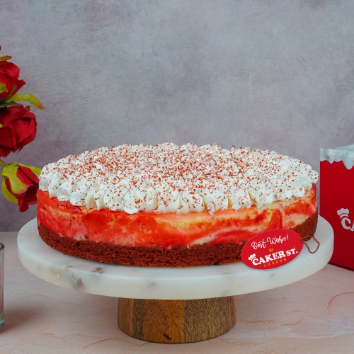 Indulge in our delightful dessert featuring a rich cookie base topped with moist red velvet sponge. Layered with velvety whipped cream and fresh cream, it's sweetened with unsalted butter, sugar, and milk. A creamy cheese cream layer adds a decadent touch, making every bite a perfect blend of flavors and textures.