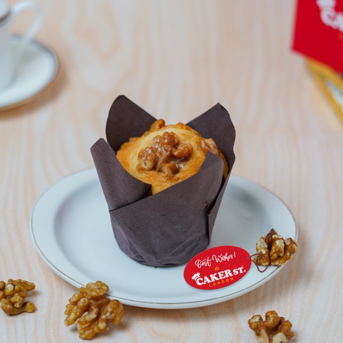 Delight in our Vanilla Walnut Muffin, crafted from a rich vanilla tea cake mix, packed with crunchy walnuts, and blended with creamy unsalted butter. This classic treat offers a perfect balance of nutty goodness and smooth vanilla flavor in every bite.
